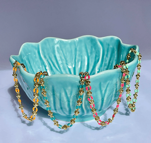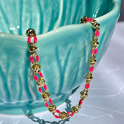 Our enamel bracelets are designed to bring personality to your jewellery collection. Choose from four striking shades, including Hot Pink, Mint, Blue, and Orange, each paired with warm gold-fill metal for a polished finish. Whether you love stacking delicate pieces or wearing a single pop of colour, these bracelets work effortlessly with both casual and occasion looks. With bespoke sizing available, you can also ensure your piece sits comfortably and elegantly on your wrist, making it truly yours.