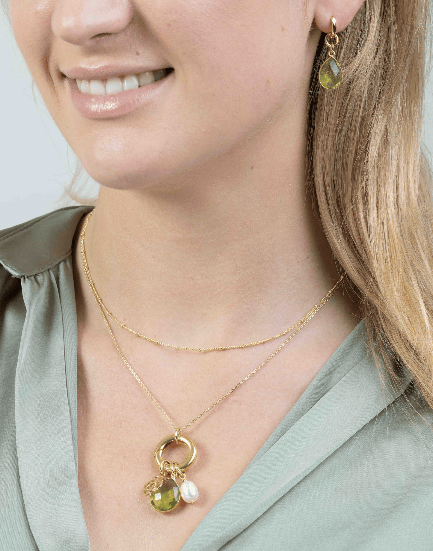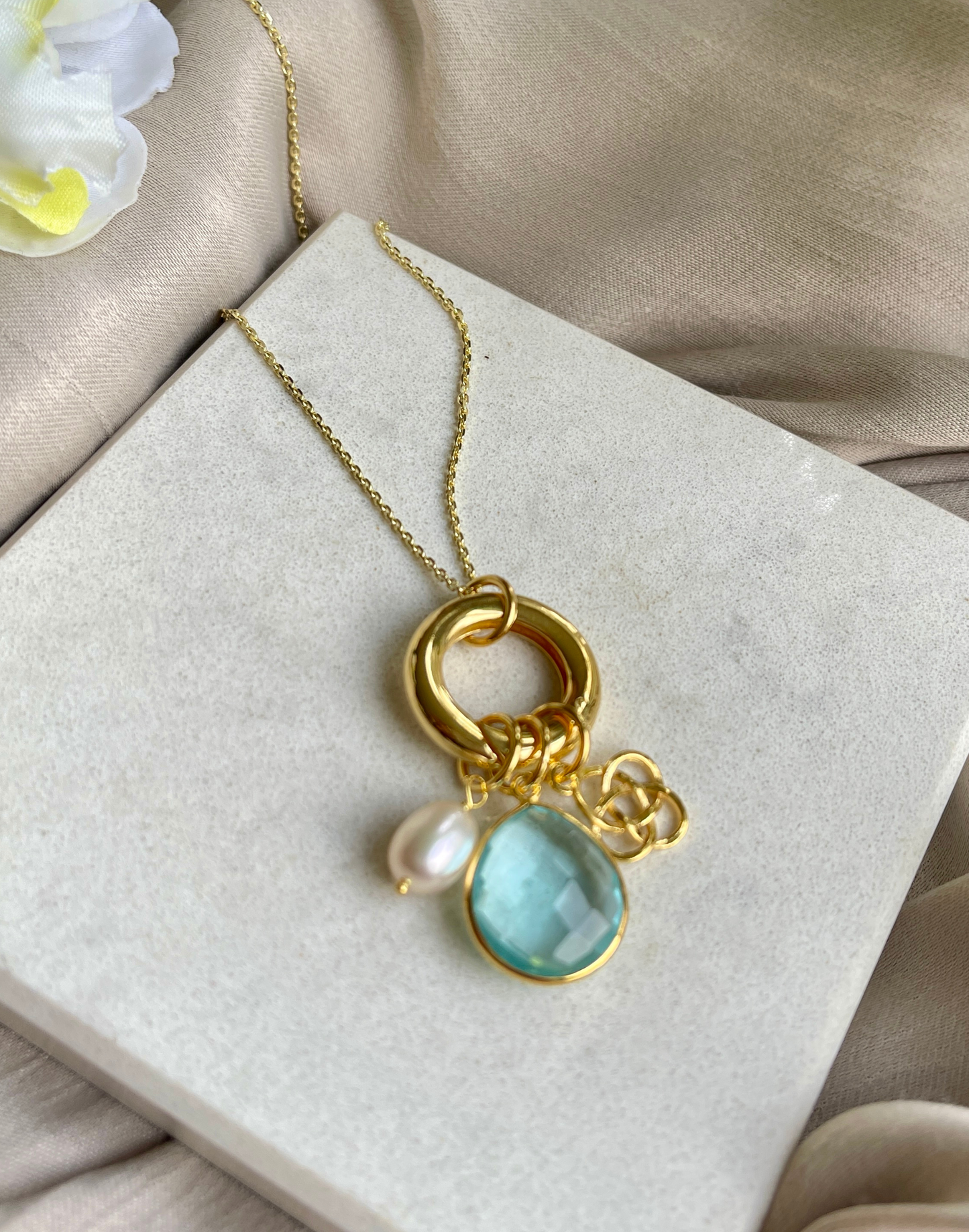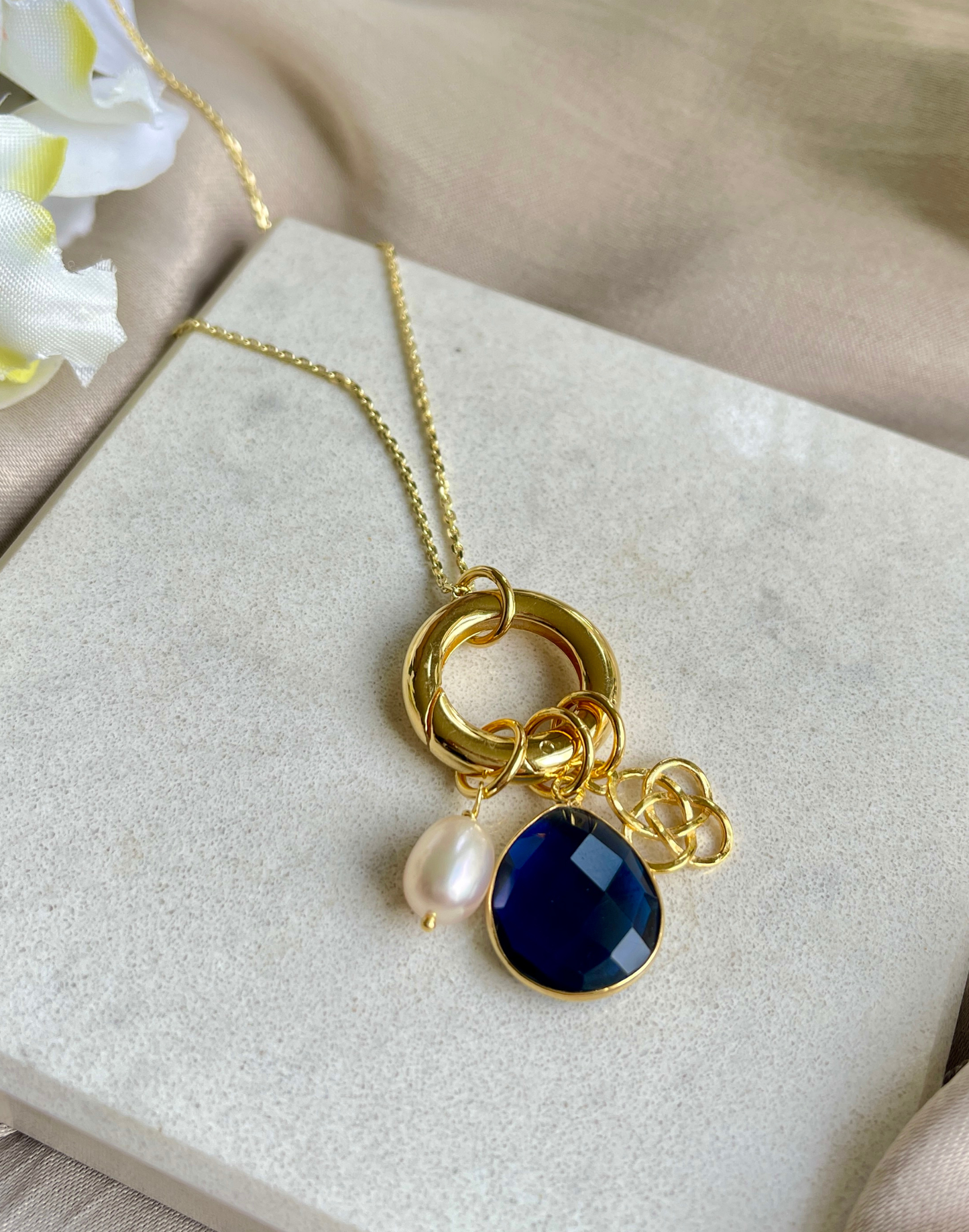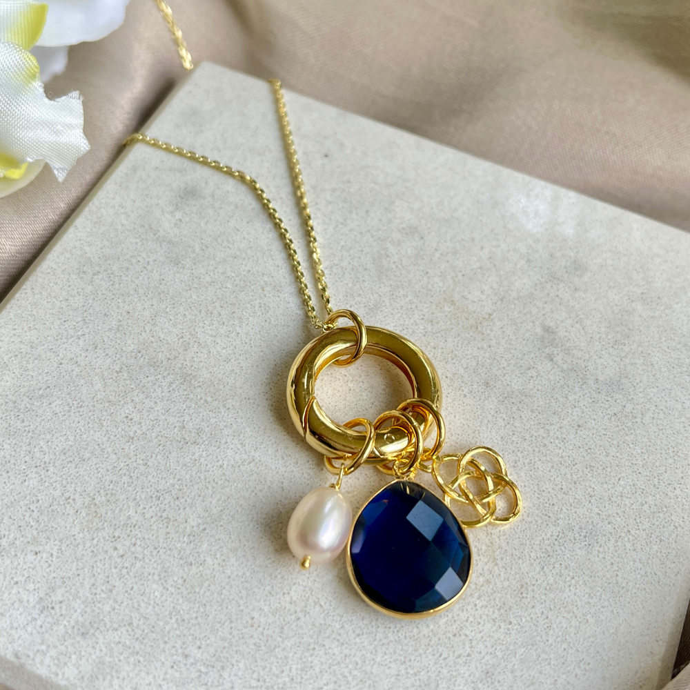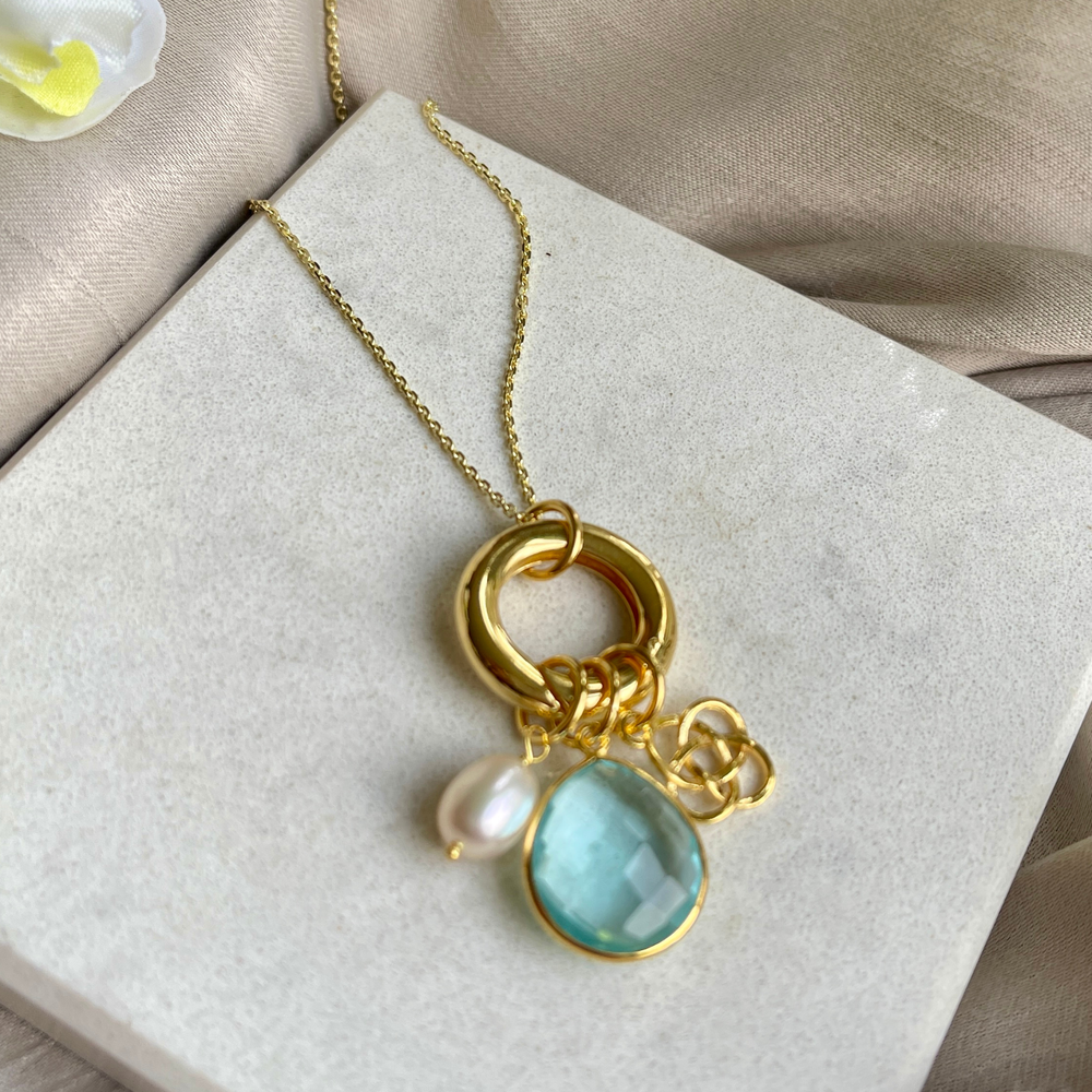 By sliding the charms off the circle pendant you can also thread them directly onto the chain in any combination you wish. With all these different combinations, you are able to wear this lovely long gold necklace with 14 different looks!