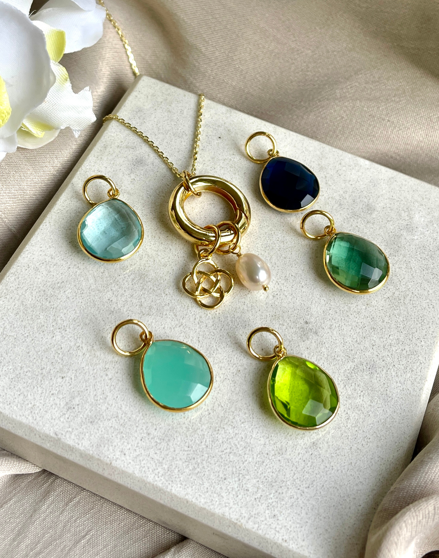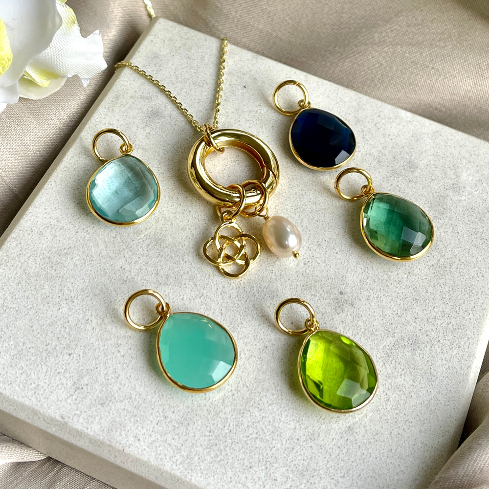Email us to add different charms to the collection. Choose from verde green (lime green colour), forest green (darker green), blue topaz, aqua chalcedony or midnight (dark blue). Email us if you'd like to buy an additional stone charm to give you even more flexibilty!