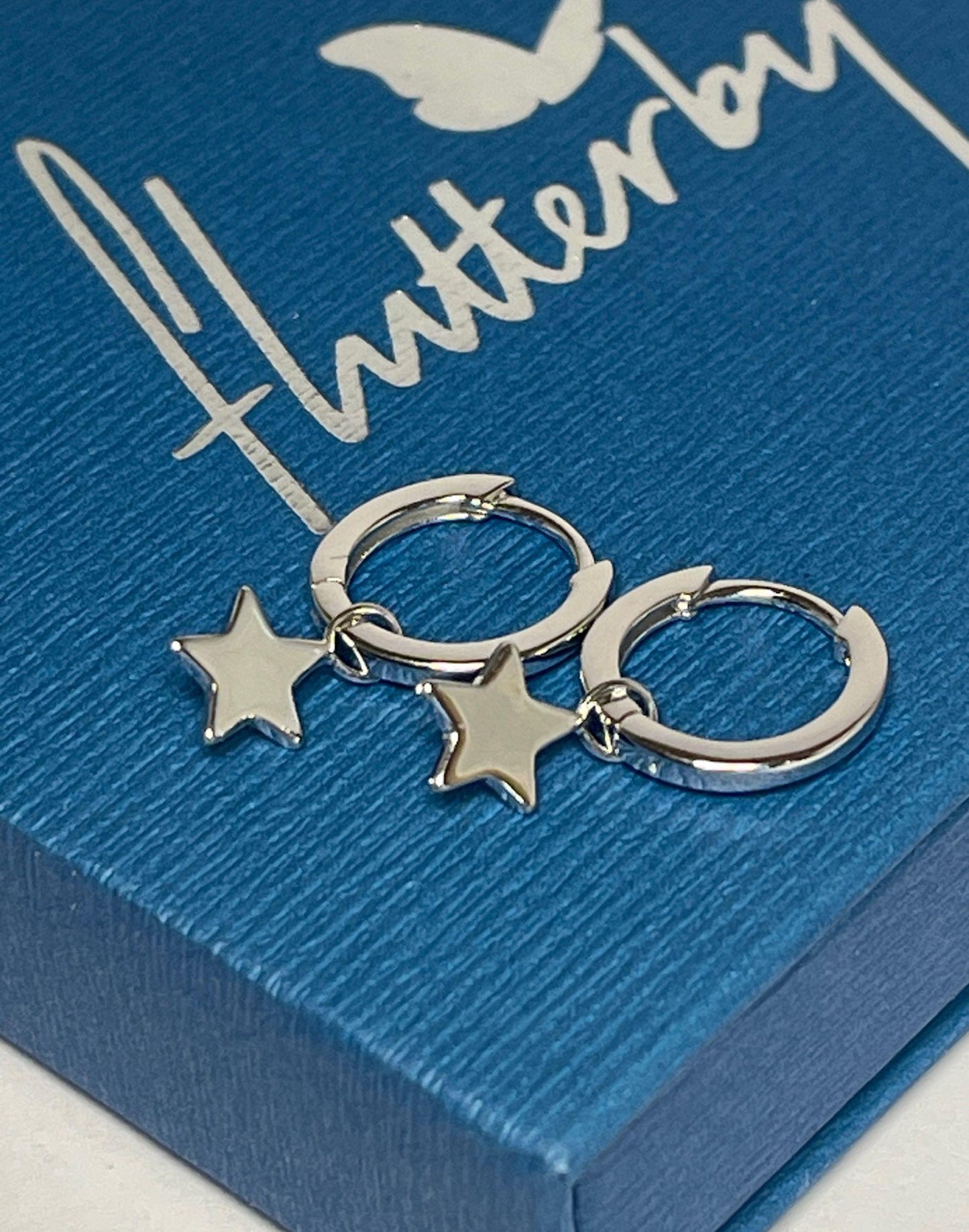 These on trend sterling silver star huggie earrings are perfect for stacking and for adding style to any earring look. Made of 925 sterling silver with a detachable pretty star charm, these earrings sit perfectly in first, second or third piercings. A proven bestseller, they make a wonderful gift. Use them to create your own bespoke style and layer with other huggies and studs for an on trend look which works for everyday wear as well as more formal occasions. Also available in gold.