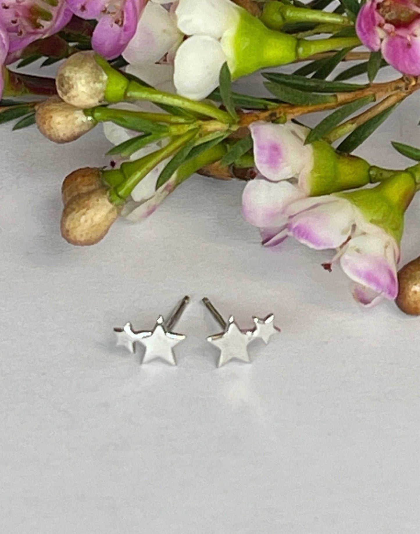 Silver Double Star Stud Earrings